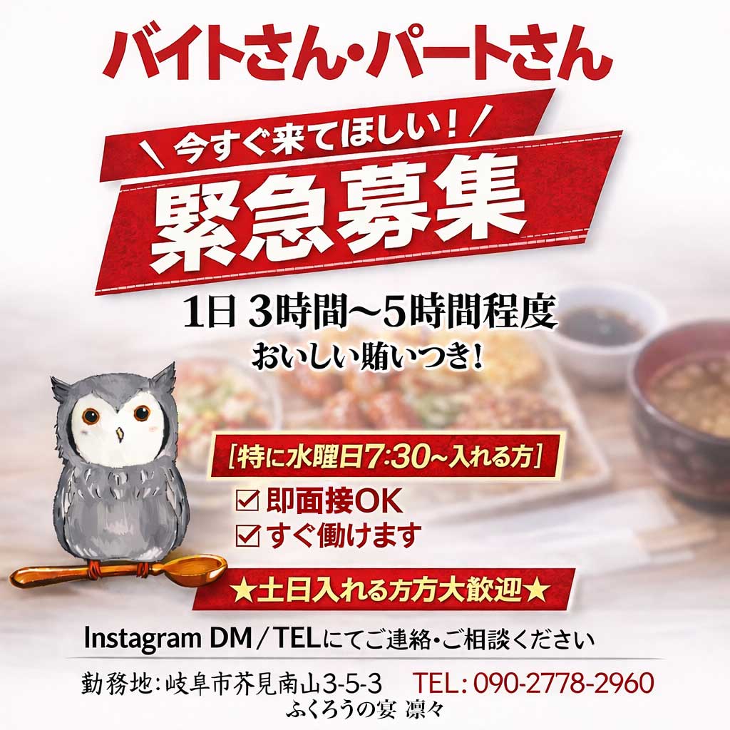 バイトさんパートさん大募集!